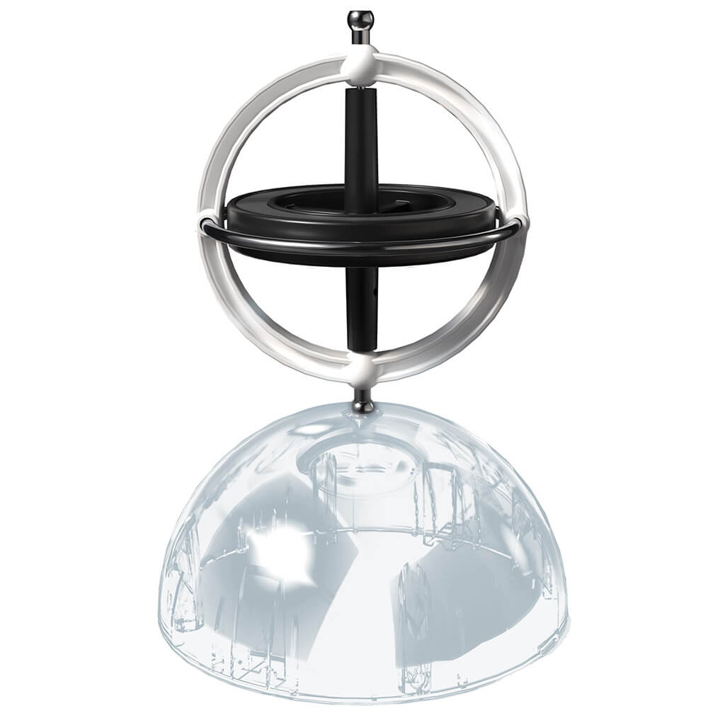 Spin the gyroscope inside the included clear plastic sphere and see and feel the forces acting on the sphere, which doubles as a storage case.