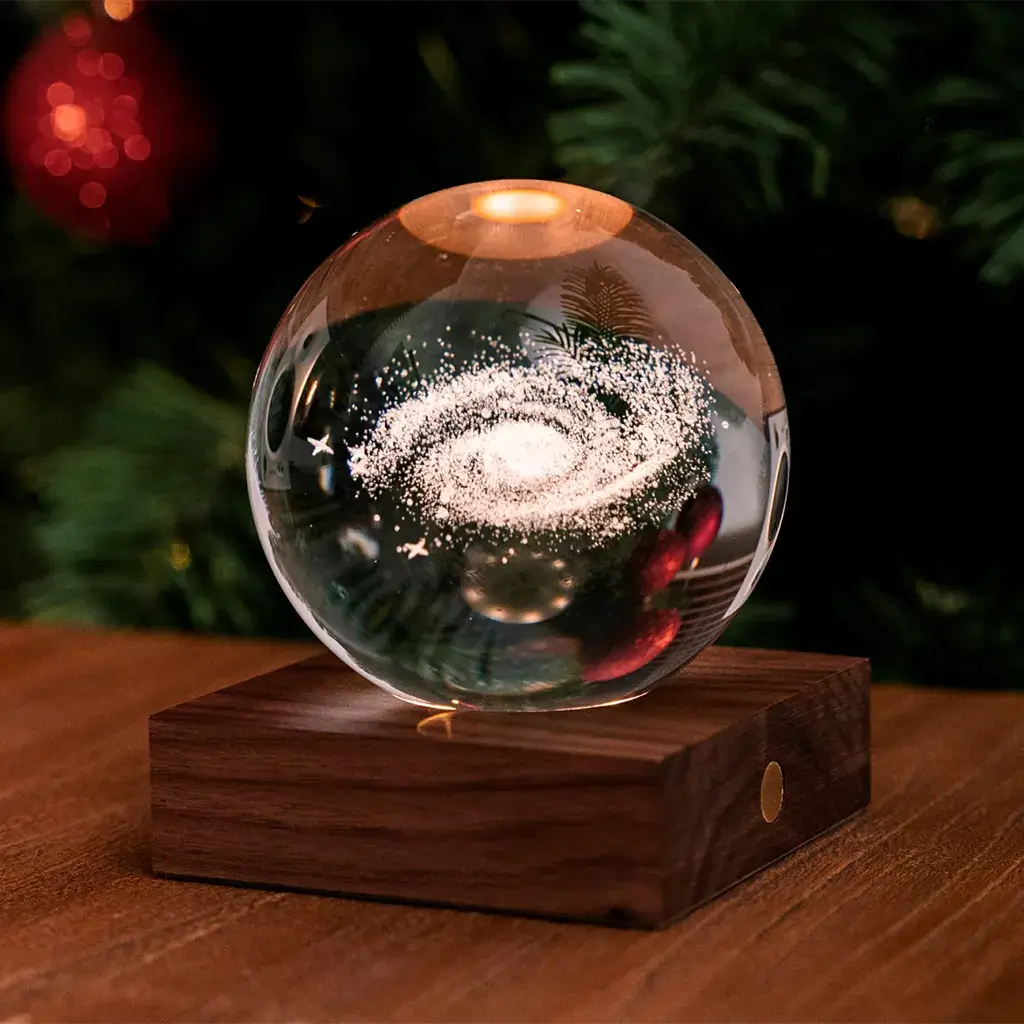 With a height of 12cm, this crystal light sits on natural walnut wood base. You can switch between three light intensity levels by touching the copper button on the front of the solid natural wood base. The crystal is also polished to a shine that reflects light and creates a stunning effect in any room.