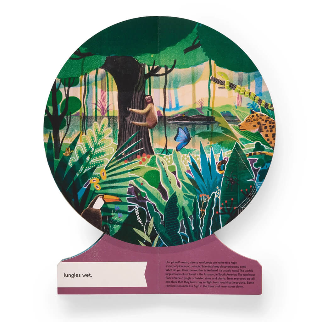 Selected by Parents Magazine as a Best Book of the Year, Our World is a colourful, creative celebration of our planet. This read-aloud introduction to geography is also a beautifully designed object which opens and folds back into a sturdy circular globe fastened by a hidden magnetic closure.