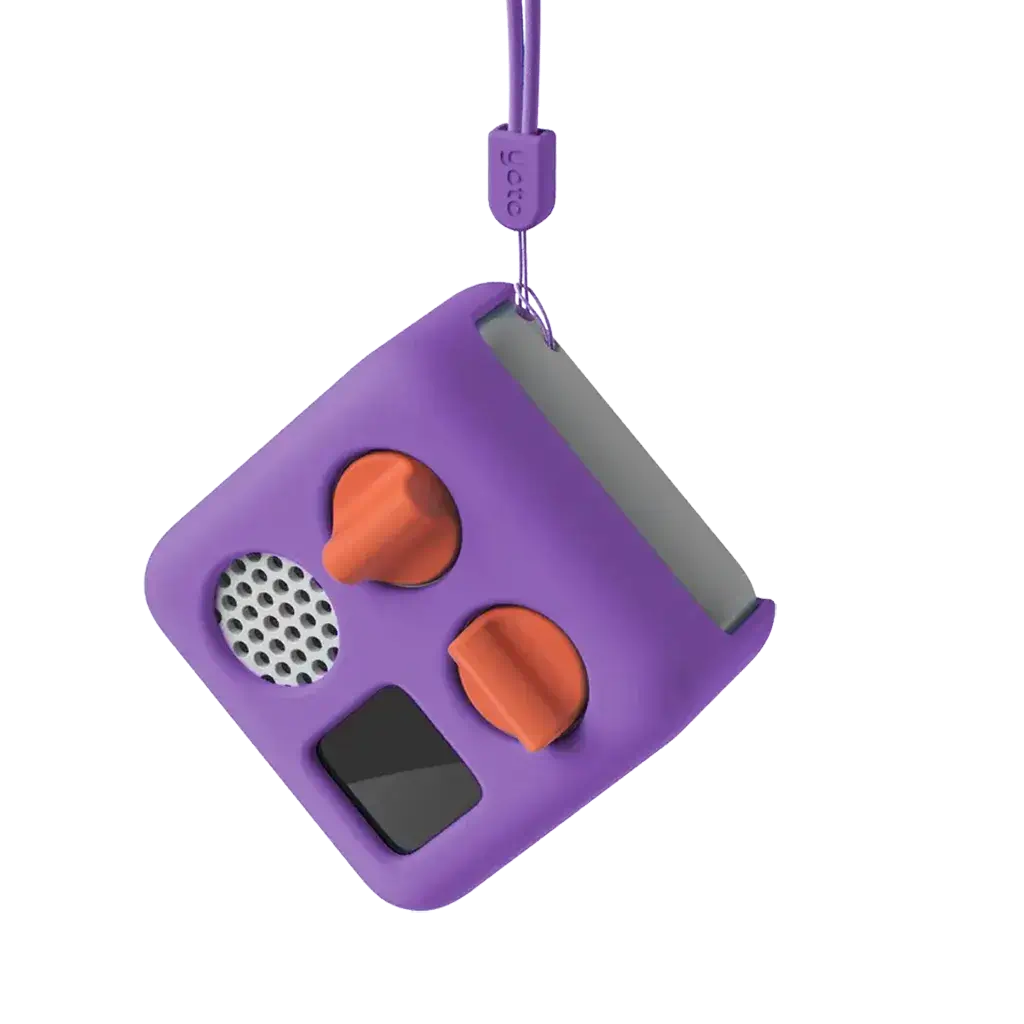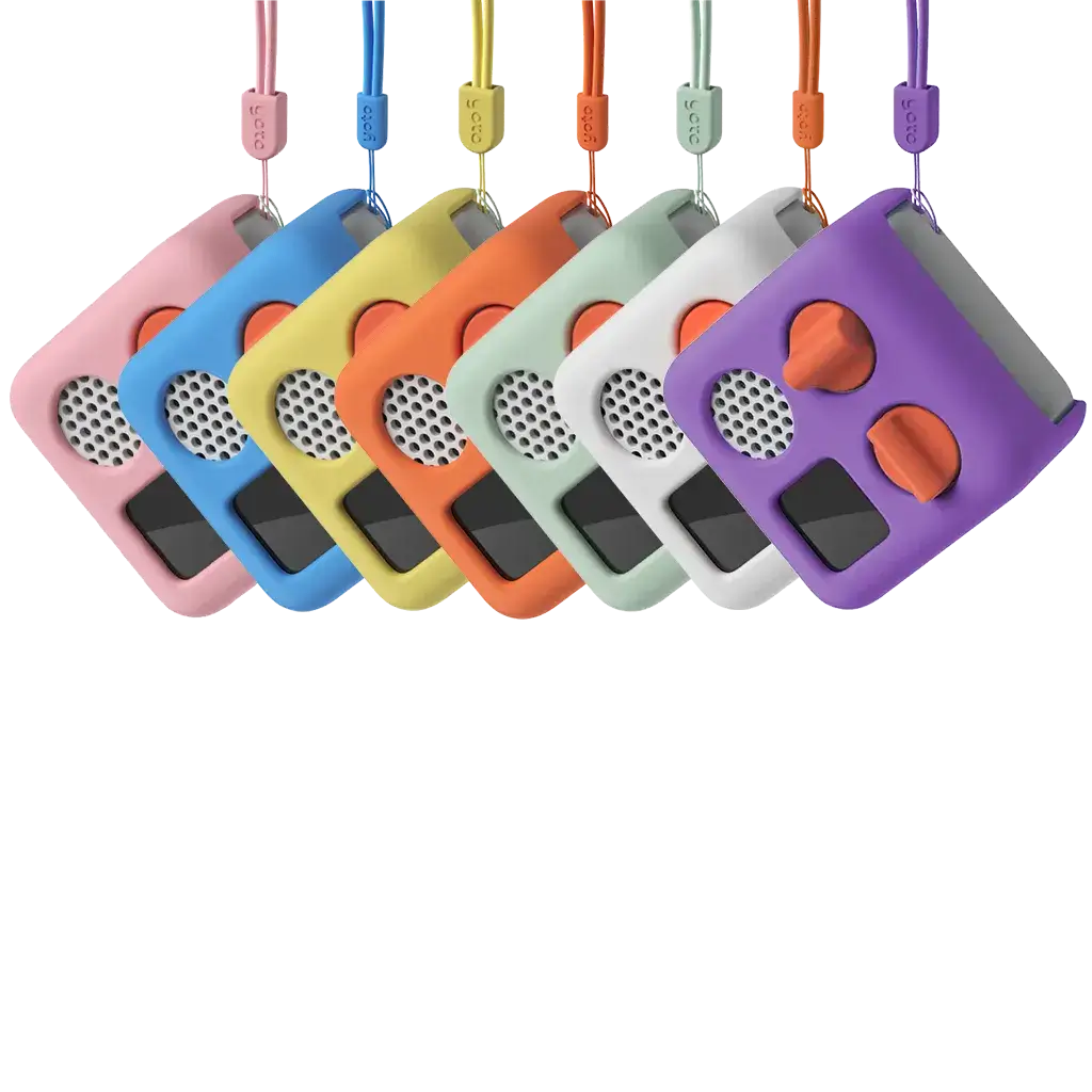 Adventure Jacket Mini is a colourful silicone carry-case for Yoto Mini. It fits snugly over your Yoto Mini to protect it from smalls bumps and it has a wrist lanyard so kids of all ages can carry Mini safely.